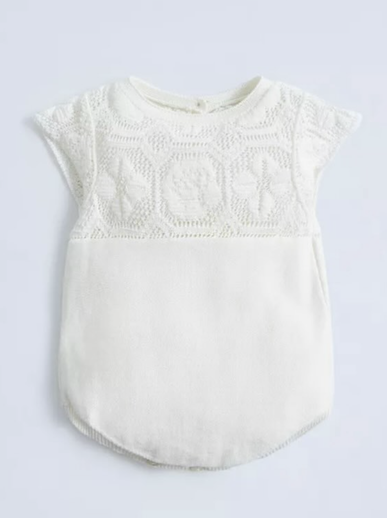Este conjunto incluye un mantel, un body y unas zapatillas de punto y crochet que son puro amor.